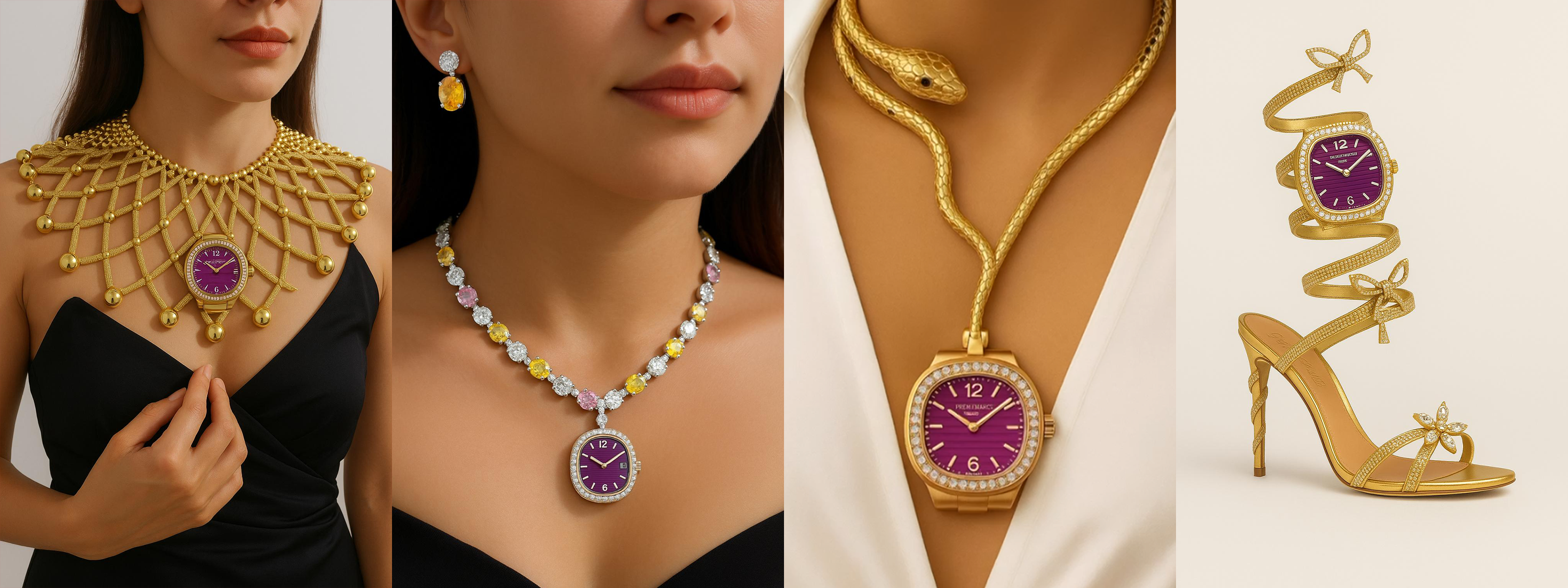 Collier Pastel Éternel « Ronde de pierres précieuses et montre intégrée »